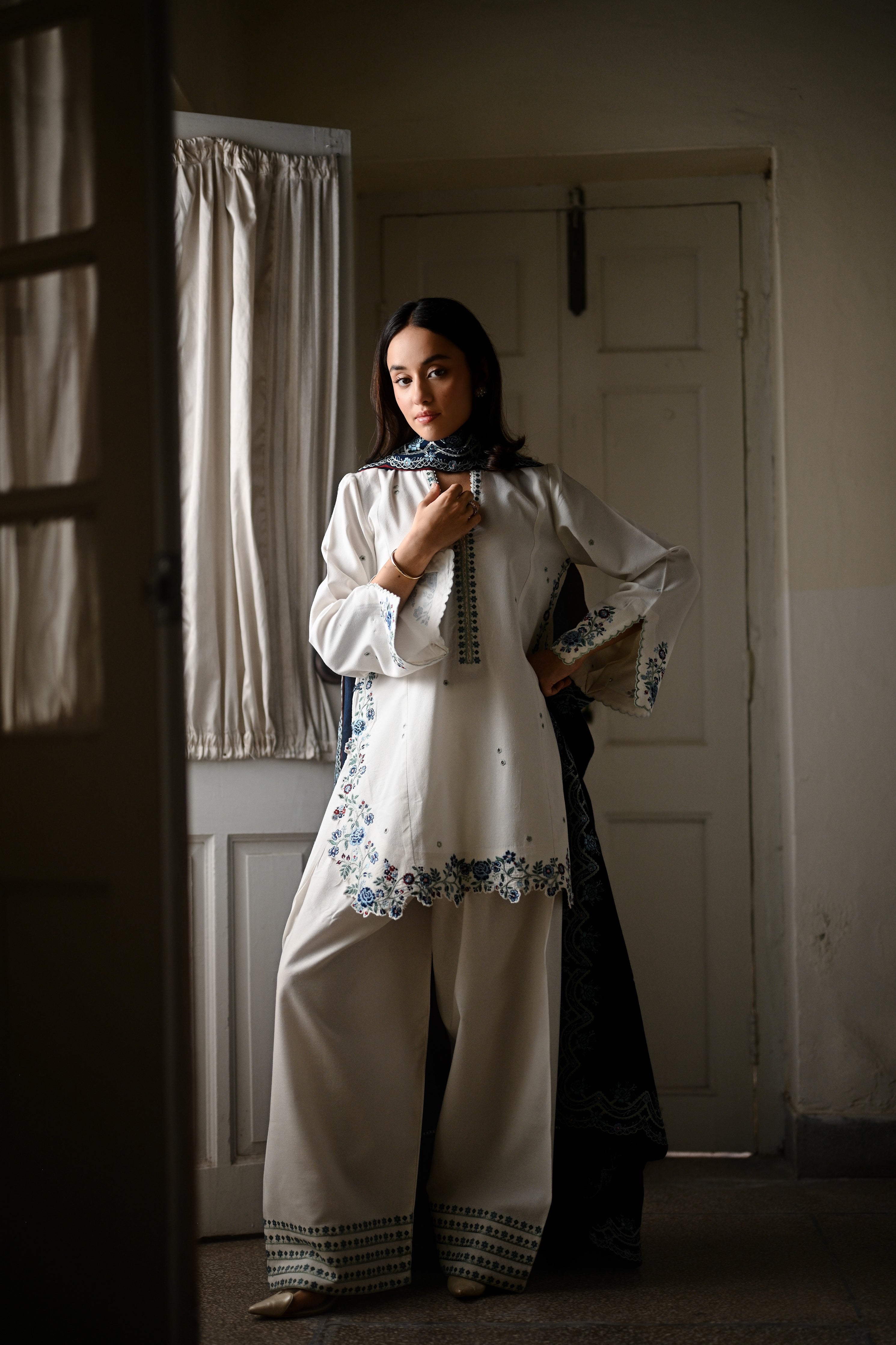 WHITE LUXURY EMBROIDERED KARANDI 3PCS SET (NPA3-25442)-READY TO WEAR-READY TO SHIP