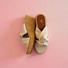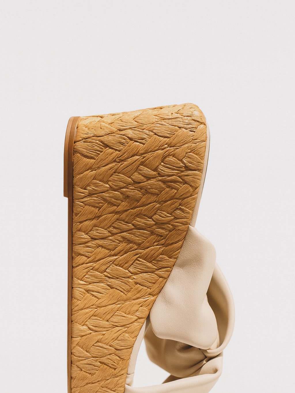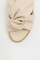 These elegant cream slip-on sandals feature a beautifully twisted knotted upper crafted from soft faux leather, giving them a refined and stylish appearance. The cushioned tan insole ensures comfort with every step, while the textured raffia-style edging adds a sophisticated finishing touch. Versatile and effortlessly chic, these sandals pair perfectly with both casual and semi-formal looks, making them an ideal choice for everyday elegance.